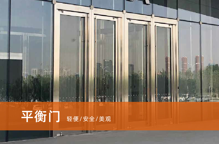 平衡门的门扇开启时呈独特的椭圆形弧度,节省空间,安全、实用、节能,补了幕墙门类产品在超大型化和抗风压上的空白。