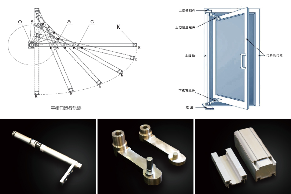 适用于商业建筑幕墙外立面的向外单向开启的超大型门,通过采用独特的中心吊和平衡支管结构,300kg的门扇开启力不足70N(不足同规格地弹门的一半,普通人一个手指可以推开)。
