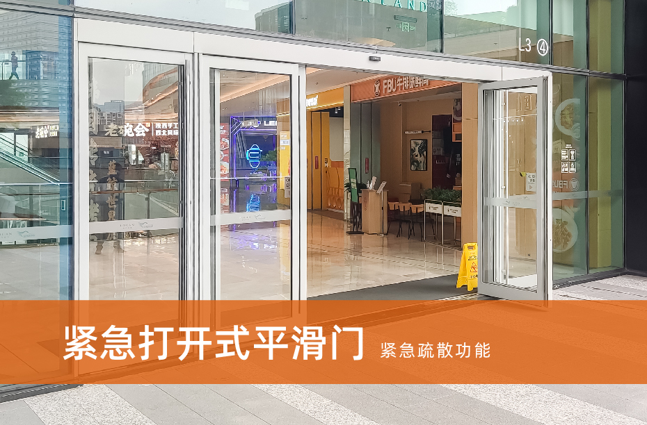 紧急打开自动门适用与于逃生和大通行宽度的需求,同时需要日常自动门功能的场所。