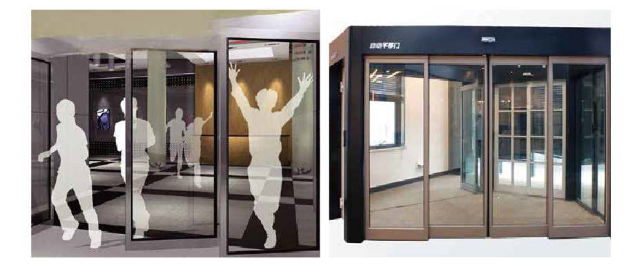 紧急打开式平滑门具备自动平滑门特点,且适用与于逃生和大通行宽度的需求。遇到紧急情况或需要临时大开口通道功能时,无论门在任何状态(关闭、自动运行)时,动扇、定扇均可向紧急疏散方向手动推开,并可向侧面移动,以达到完全打开的位置,几乎可以实现通道的整个宽度和高度。